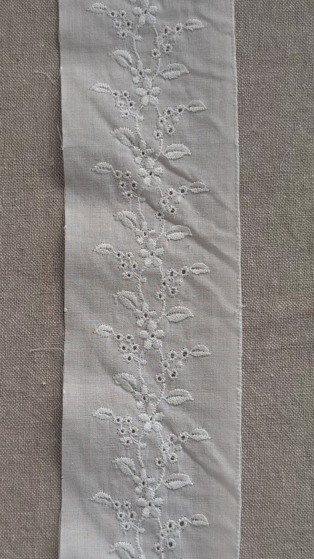 The insertion embroidery trim has an elegant and delicate flower pattern that will elevate your project.