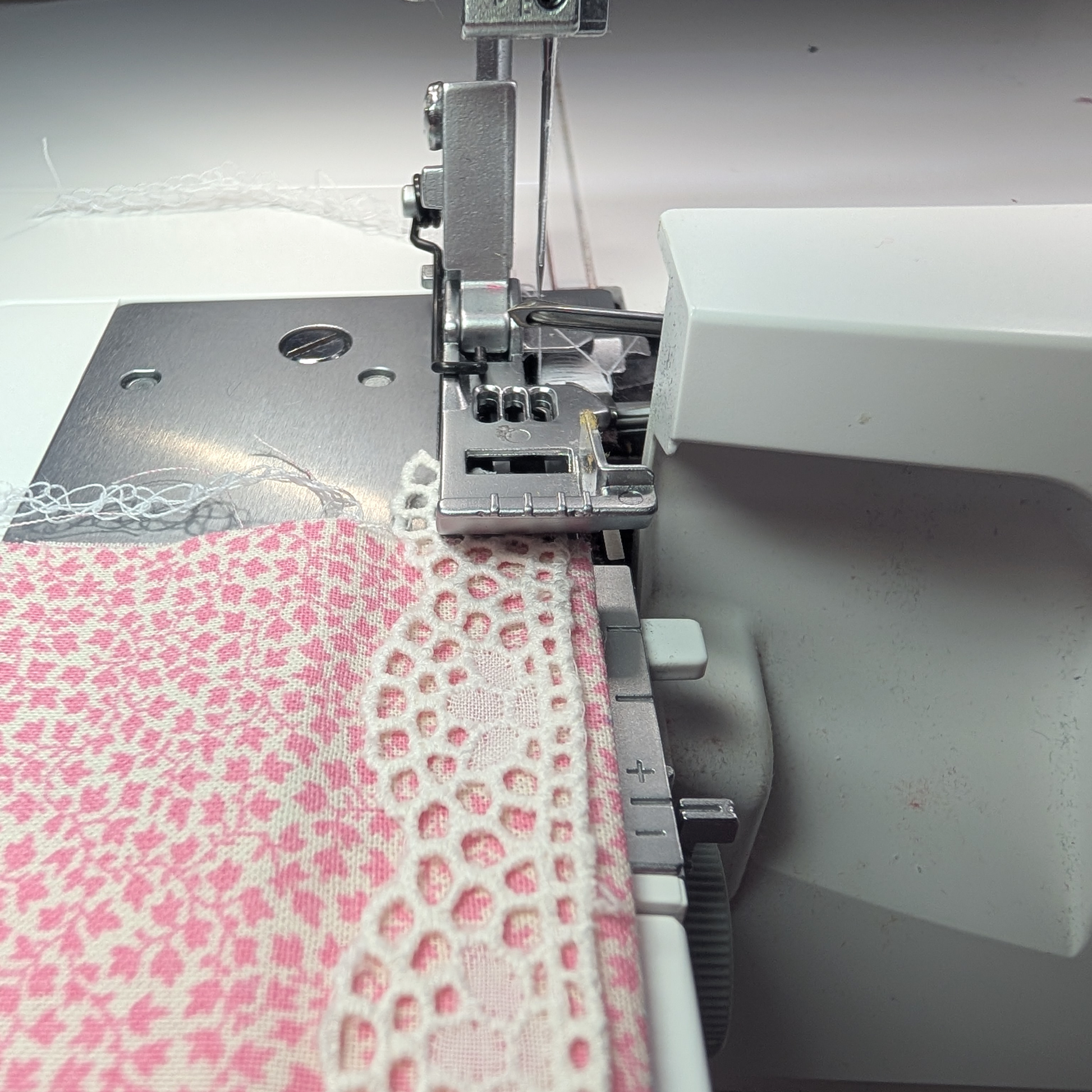 - Using the blind hem or lace presser foot.