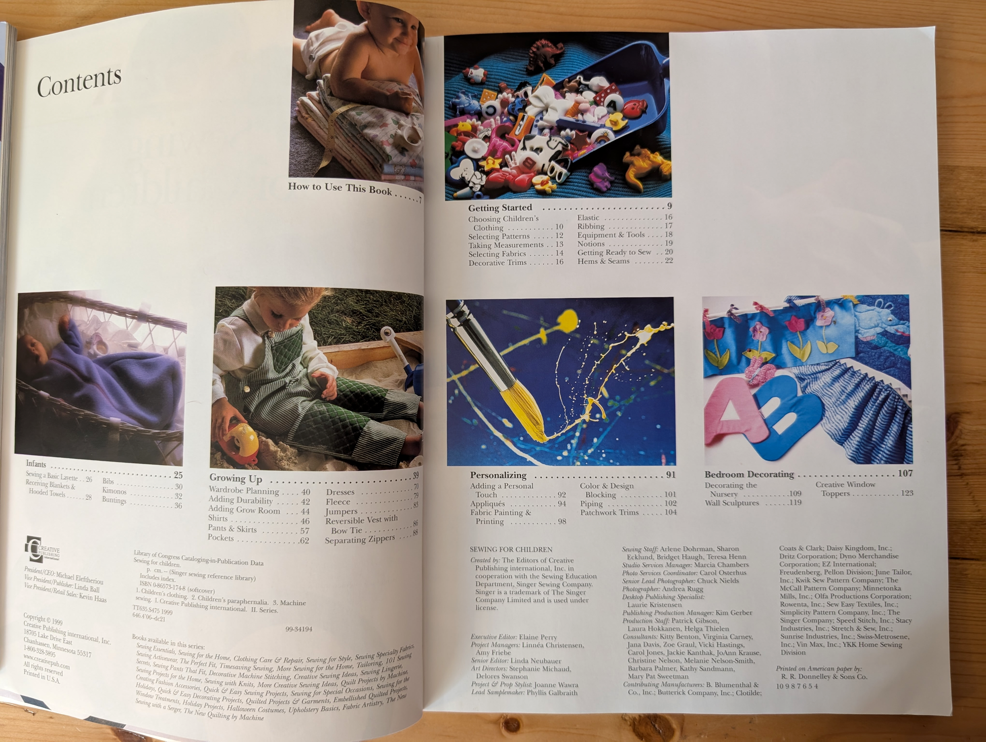 Practical sewing book that provides instructions for sewing clothes and accessories for infants, toddlers and school-age children. Includes templates. Clear step-by-step instructions and guides.