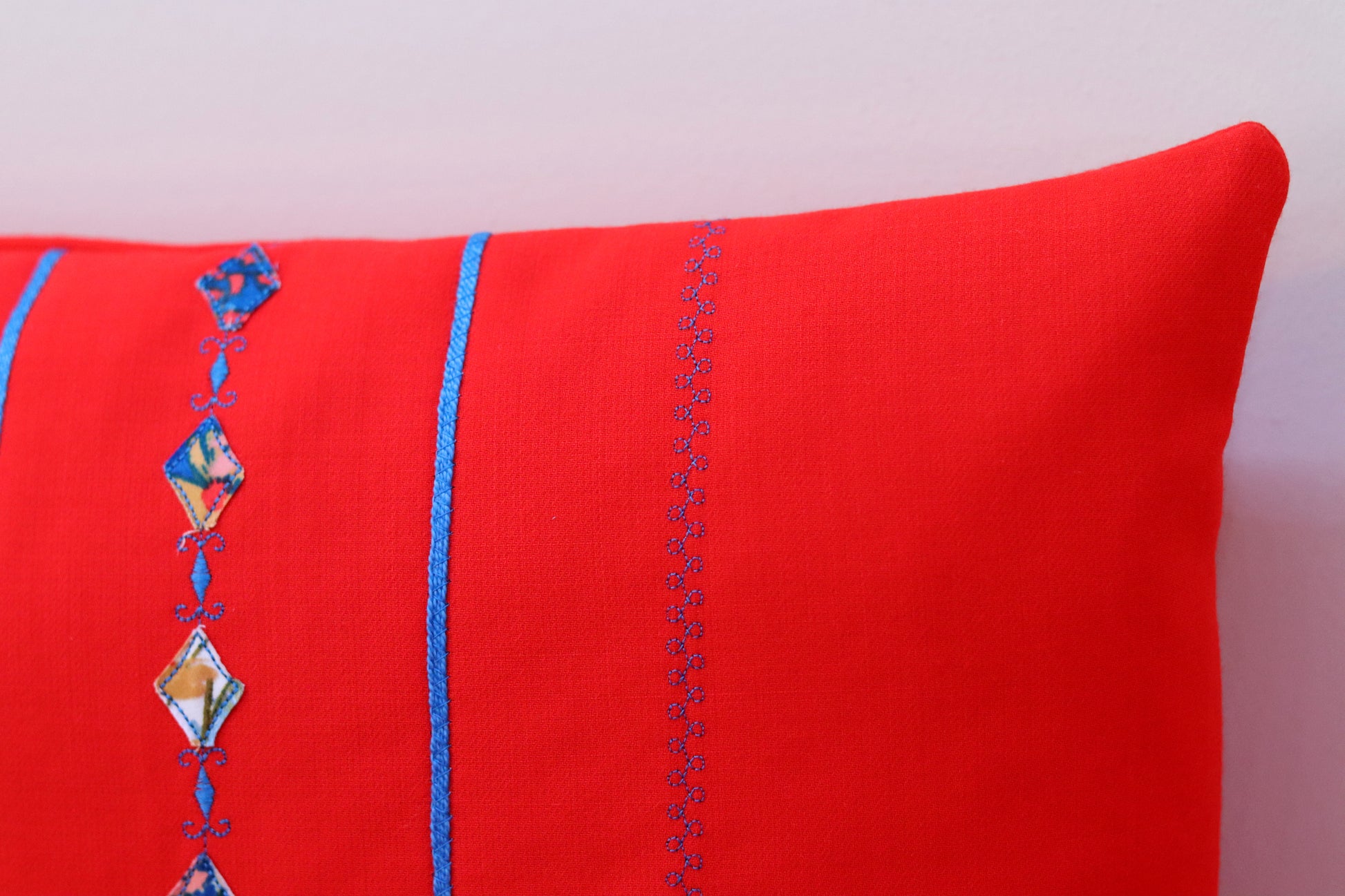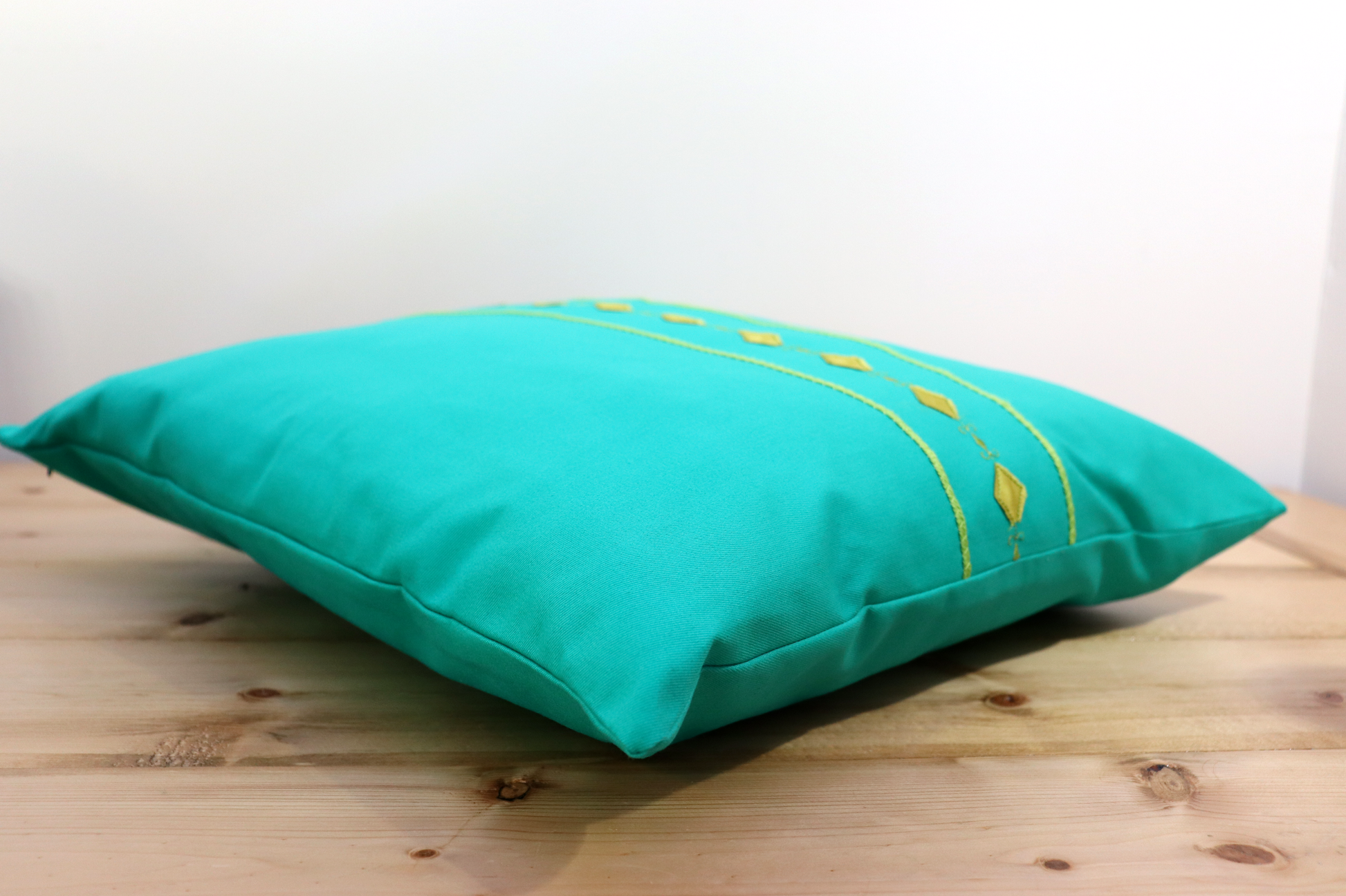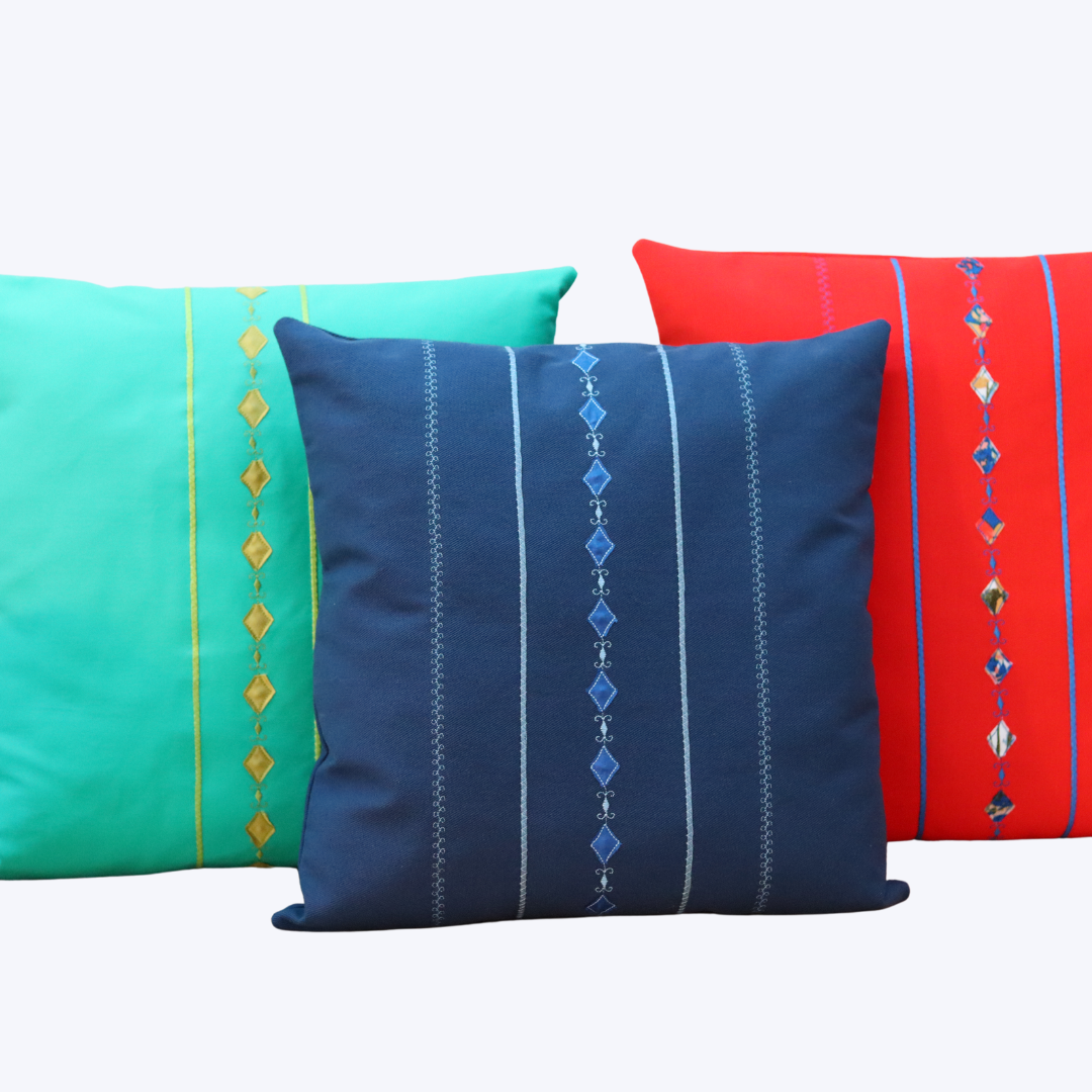 Be bold and take a chance with our Throw Pillow Covers! With its intricate applique design, elegant decorative stitches, and floss couching, this cover is perfect for adding a touch of adventure to your décor. Available in three color combinations: a stretchy green cotton fabric, a bold blue cotton fabric, and a vibrant orange red. Order now and elevate your home décor game!