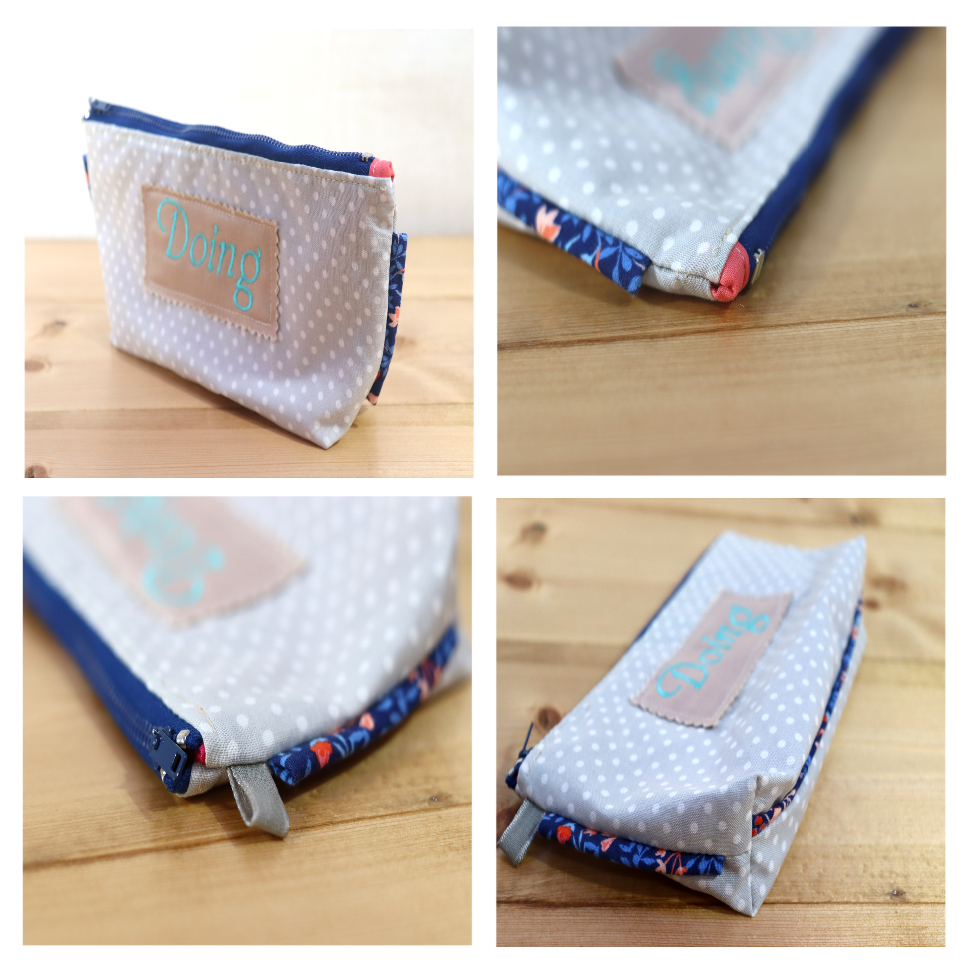 The sides and bottom seam trims are made in blue and orange print from scrap fabric. (Saving fabric scraps from the landfill. Yay!)