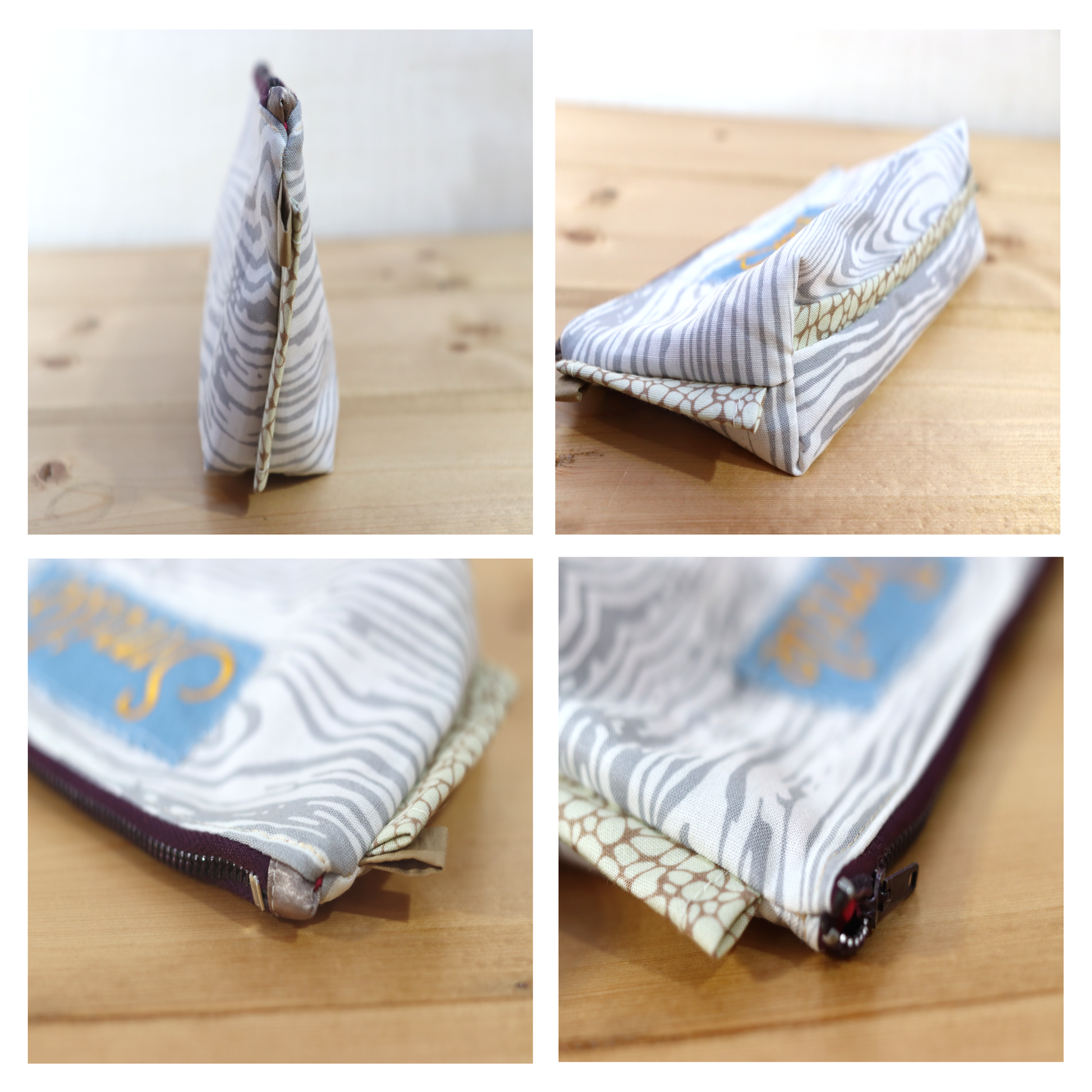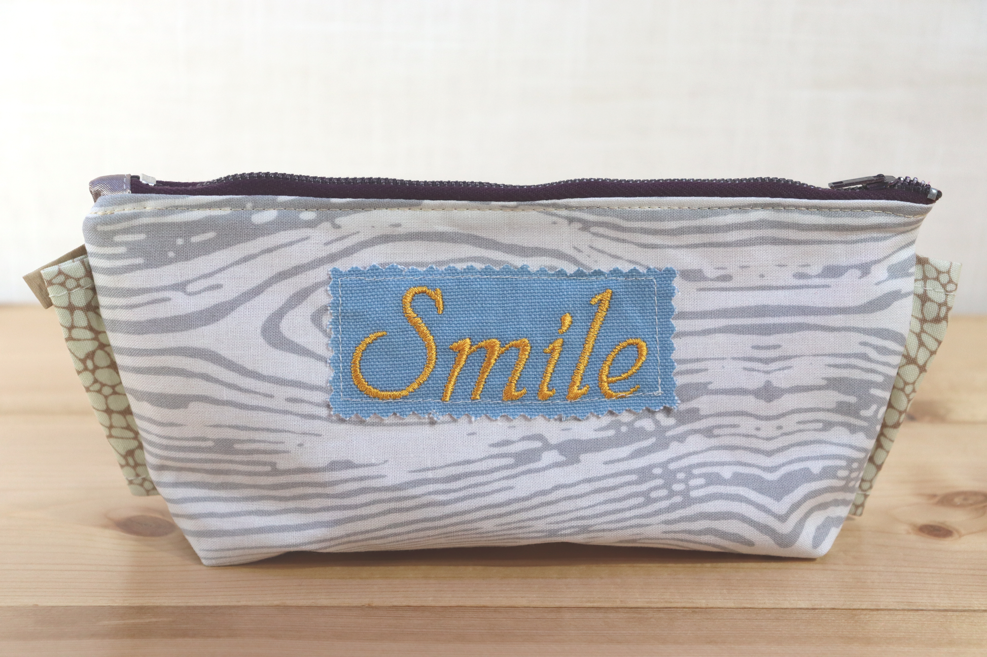 The sides and bottom seam trims are made in cream and light cream and brown print from scrap fabric. (Saving fabric scraps from the landfill. Yay!)