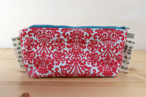 The sides and bottom seam trims are made in white and gray dots print from scrap fabric. (Saving fabric scraps from the landfill. Yay!)